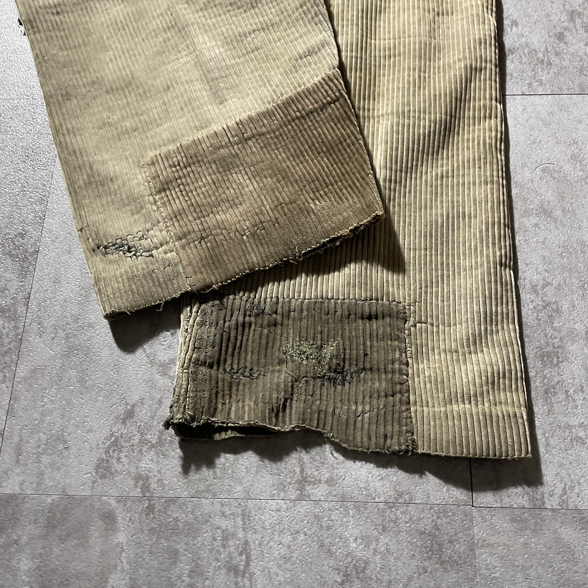 ・左 もも、ひざ、すそ、ポケットリペア跡あり