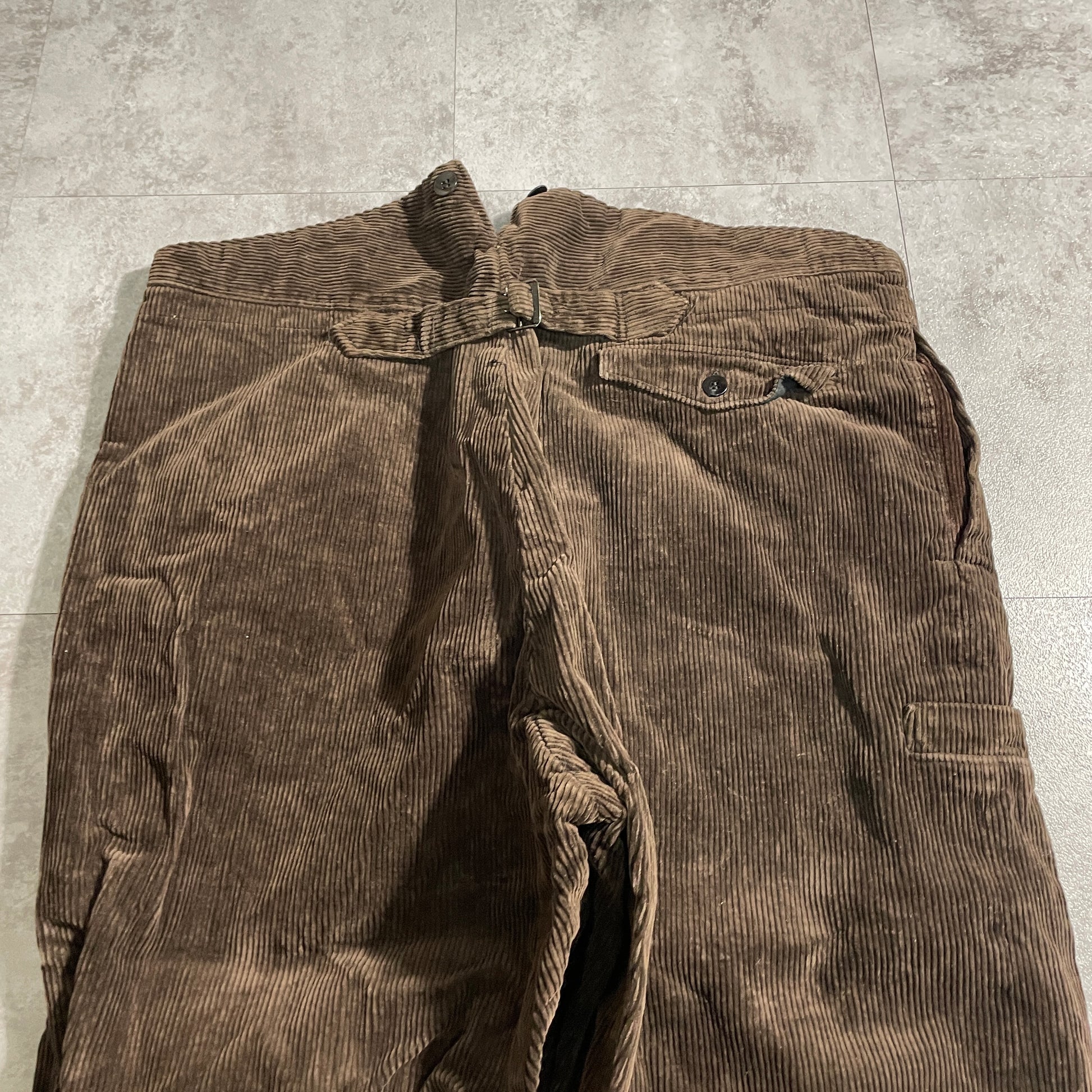 40-50s ファーマーズ 太畝コーデュロイ ダークブラウン 針式シンチバック 【W39 L24】
