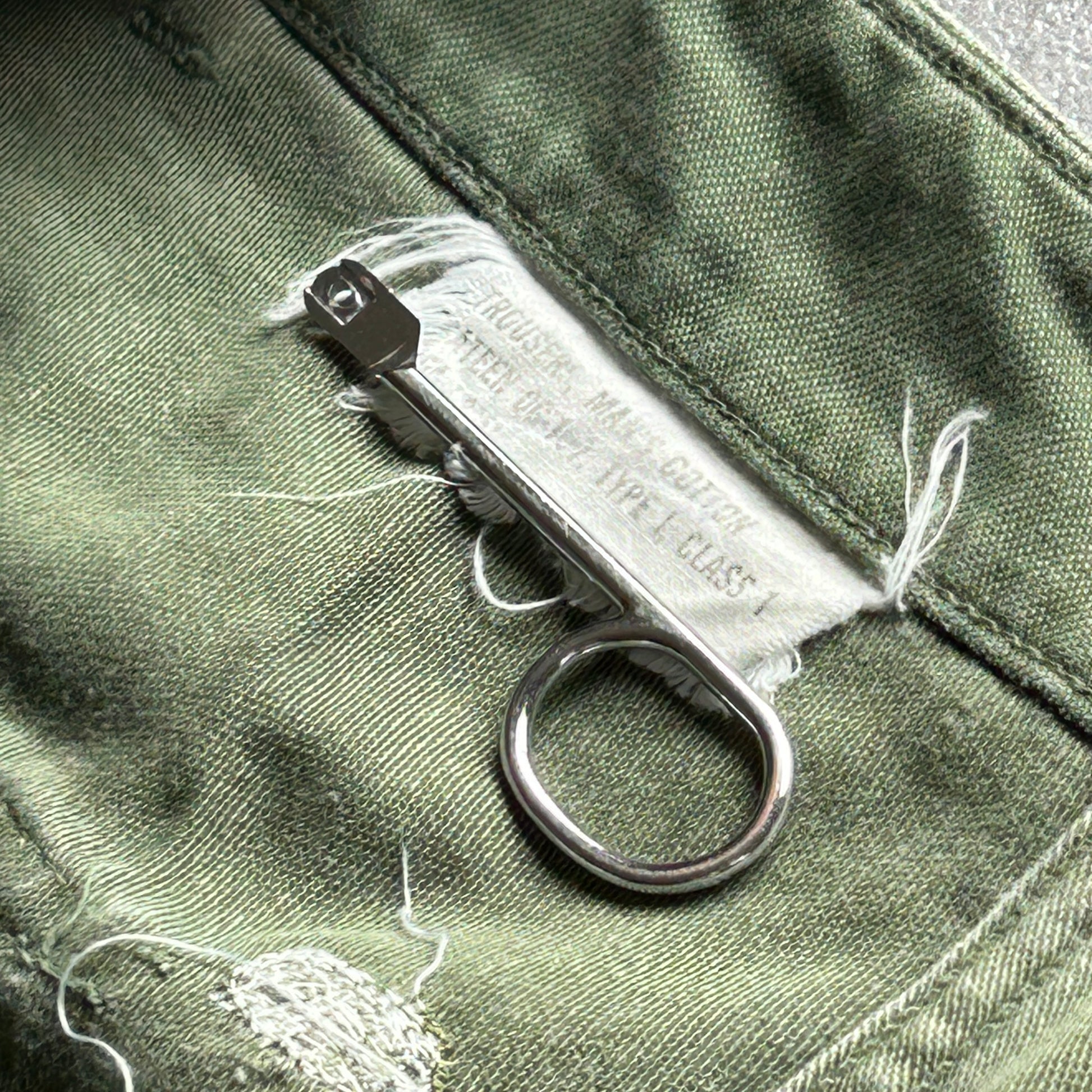 ・右股リペア跡、ボタン糸色違い